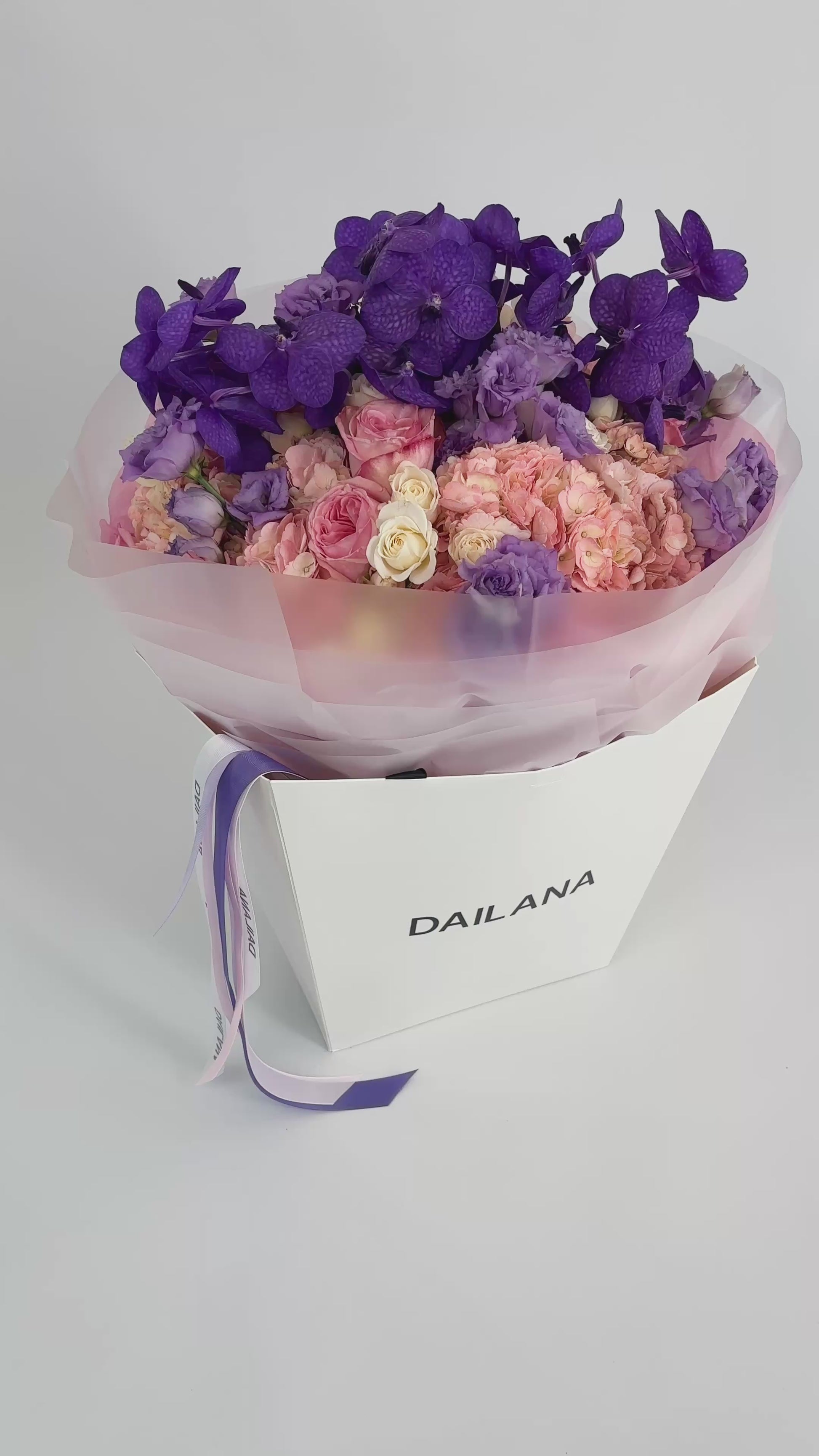 This bouquet consists of hydrangeas, orchids, spray peony roses and lissi.